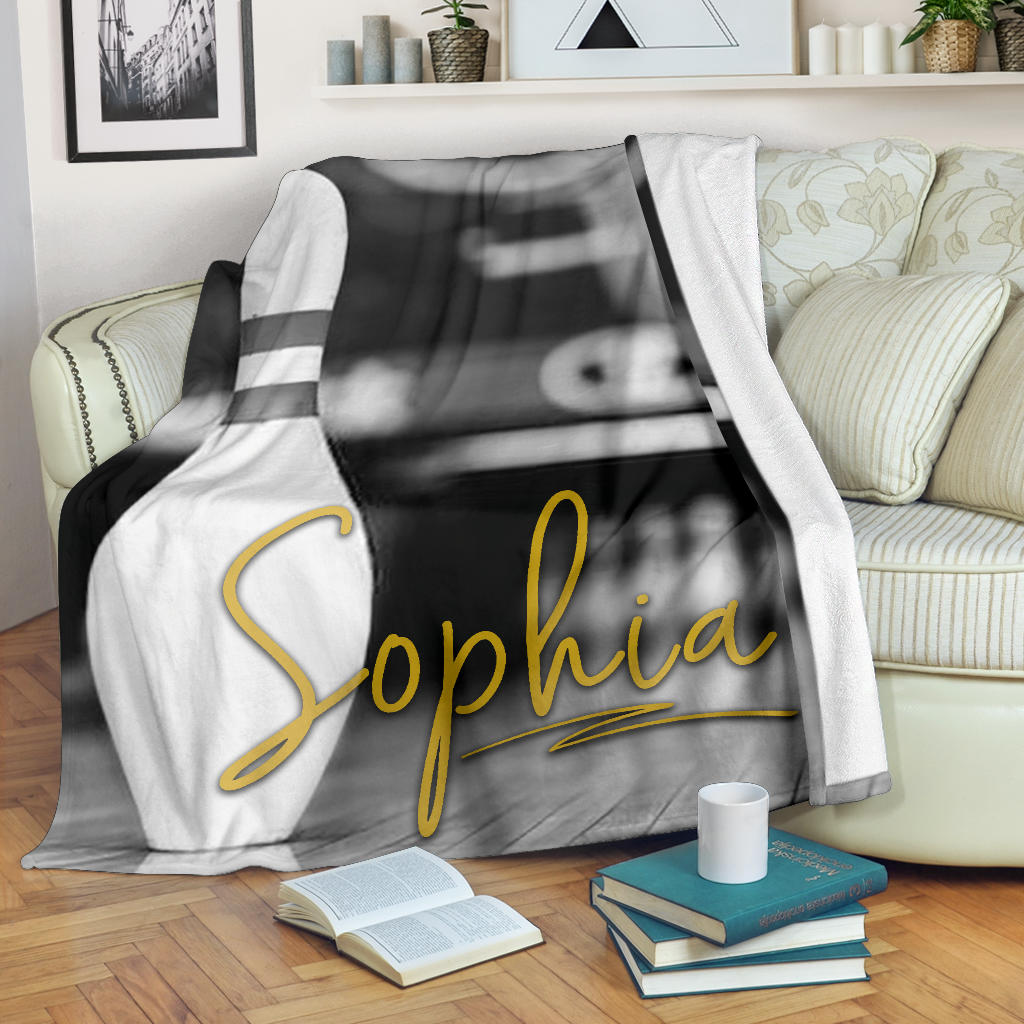 Maxcorners Black White Bowling Pin Customized Name Blanket
