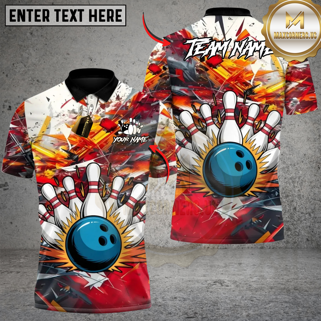 Maxcorners Bowling Blast Multicolor Customized Name, Team Name 3D Shirts