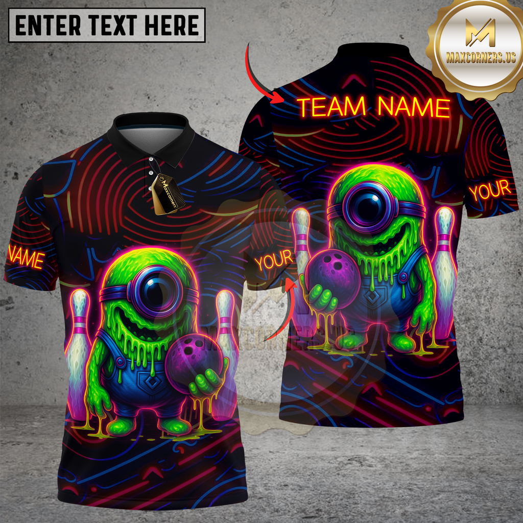Maxcorners Bowling Neon Monster with Bowling Ball and Pins Multicolor Customized Name, Team Name 3D Shirts