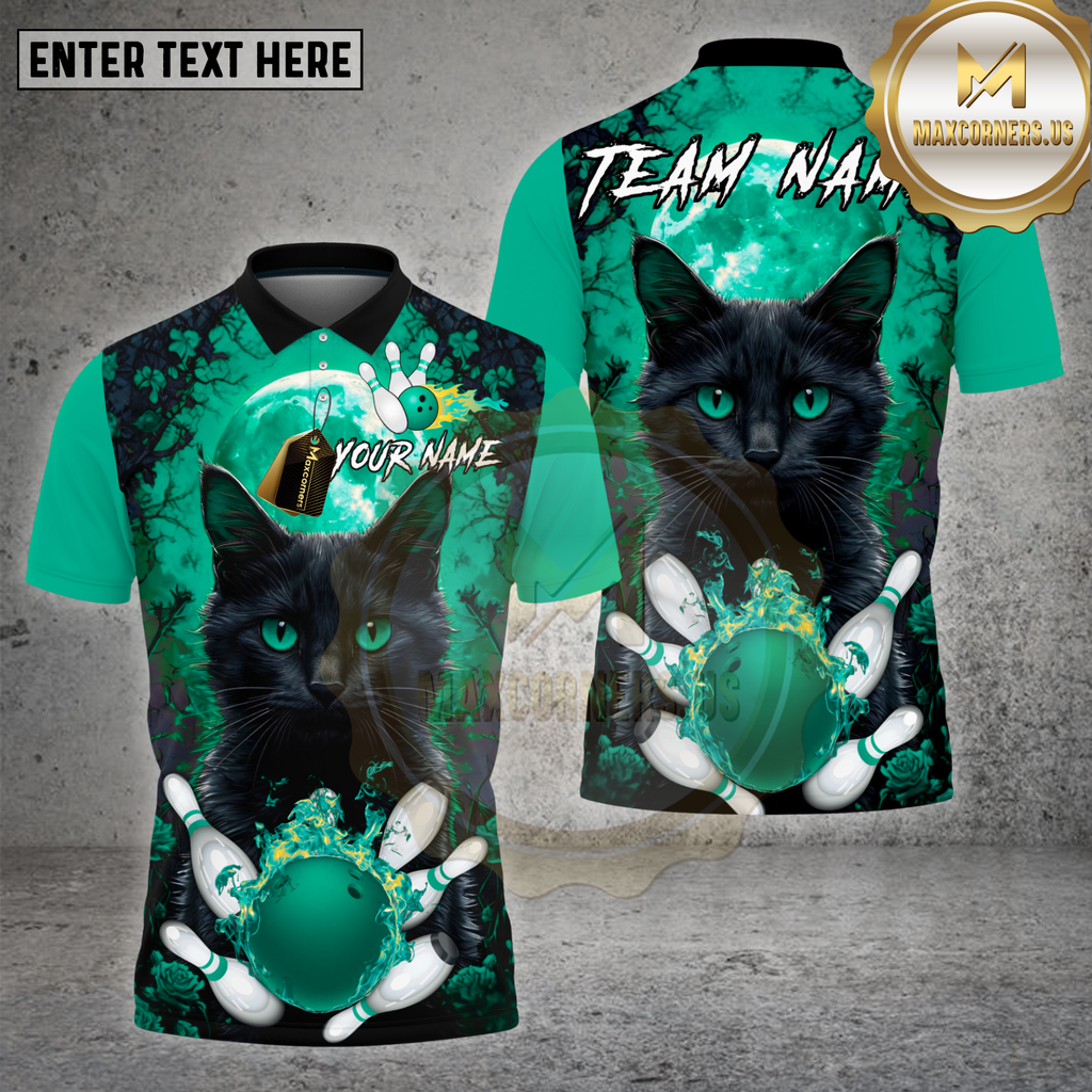 Maxcorners Bowling Shirt Moon Cat Fire Bowling Multioptions Personalized Name, Team Name Unisex 3D Shirt