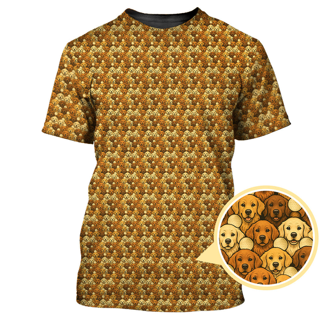 Maxcorners Crazy Golf Polos For Men, Golden Retriever Pattern Golf Shirt, Funny Golf Shirts