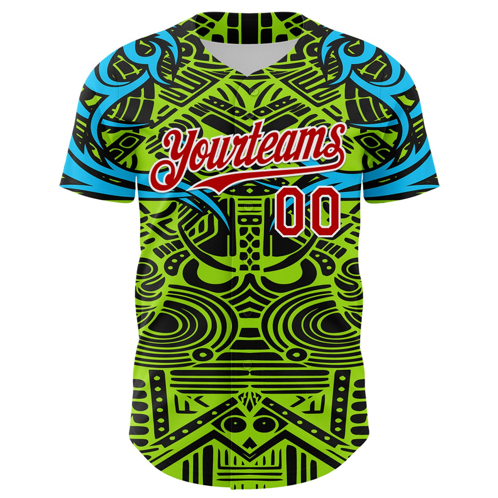 Maxcorners Custom Green Red Blue Black-White 3D Pattern Design Burner Costumes Tribal Premium Baseball Jersey LM0210