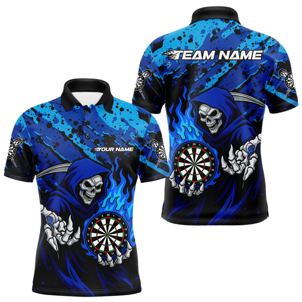 Maxcorners Custom Grim Reaper Blue Flames Dartboard Dart Men Polo Shirt Splatter Grunge Dart MT1110