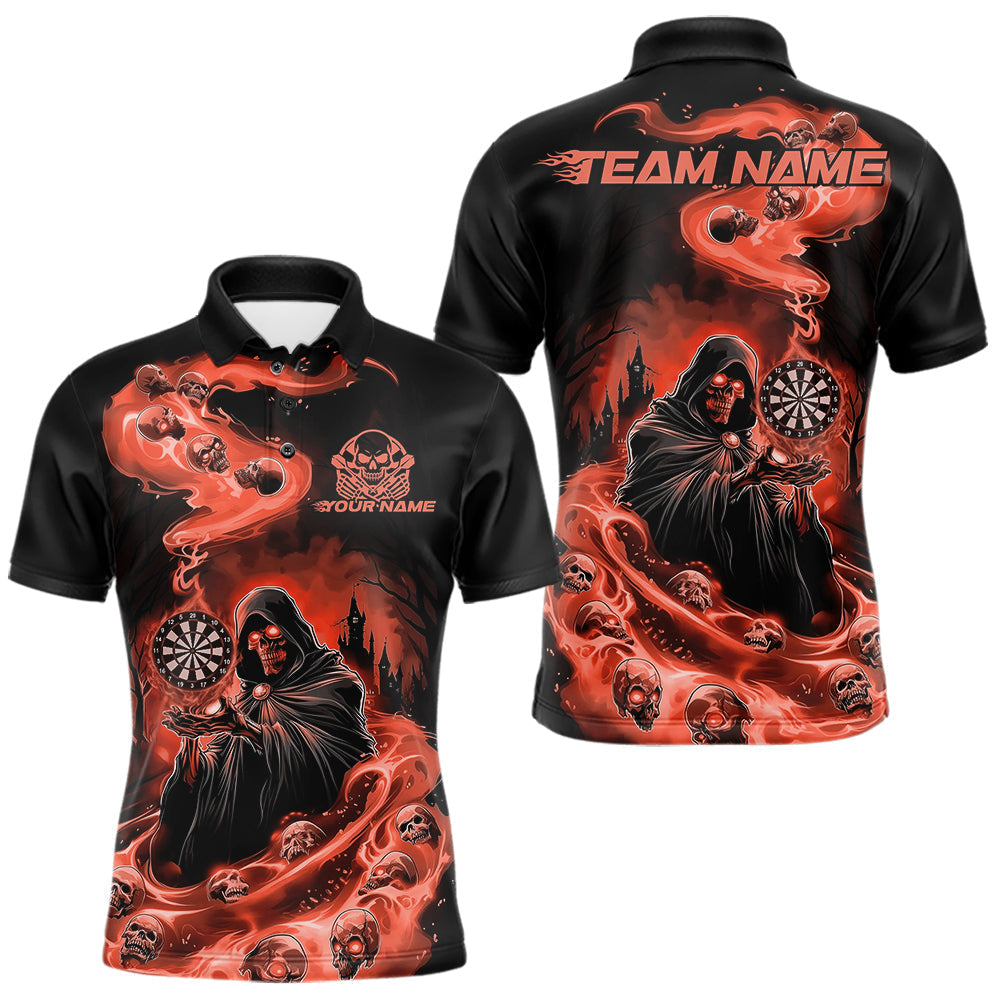 Maxcorners Custom Orange Flame Grim Reaper Dart Men Polo Shirts, Dart Team Halloween Outfits MT0410