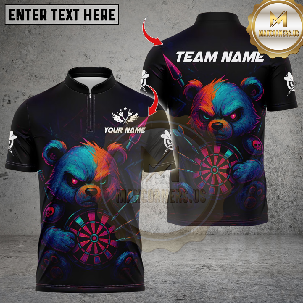 Maxcorners Darts Bear Neon Dark Style Multicolor Customized Name, Team Name 3D Shirts