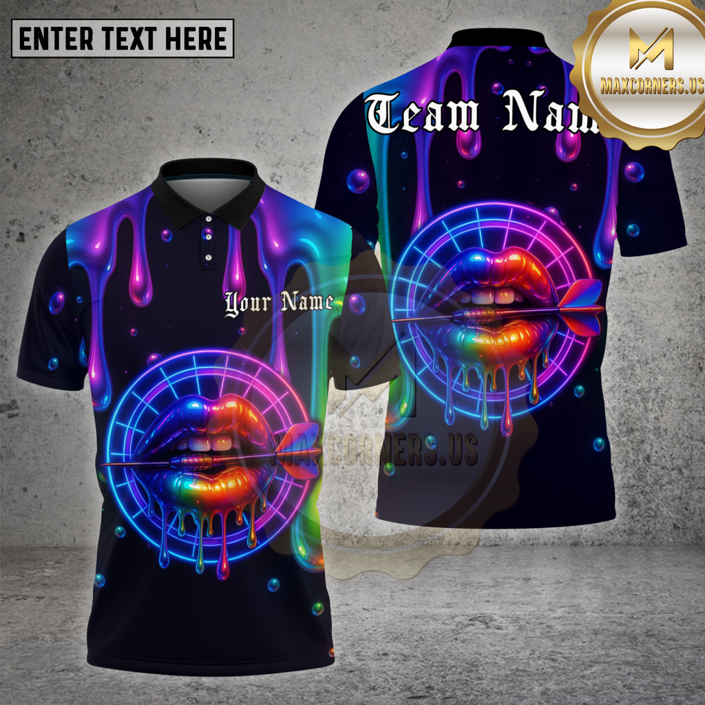 Maxcorners Darts Shirt Neon Lips Dripping Dartboard Glow Multioptions Personalized Name, Team Name Unisex 3D Shirt (4 Colors)