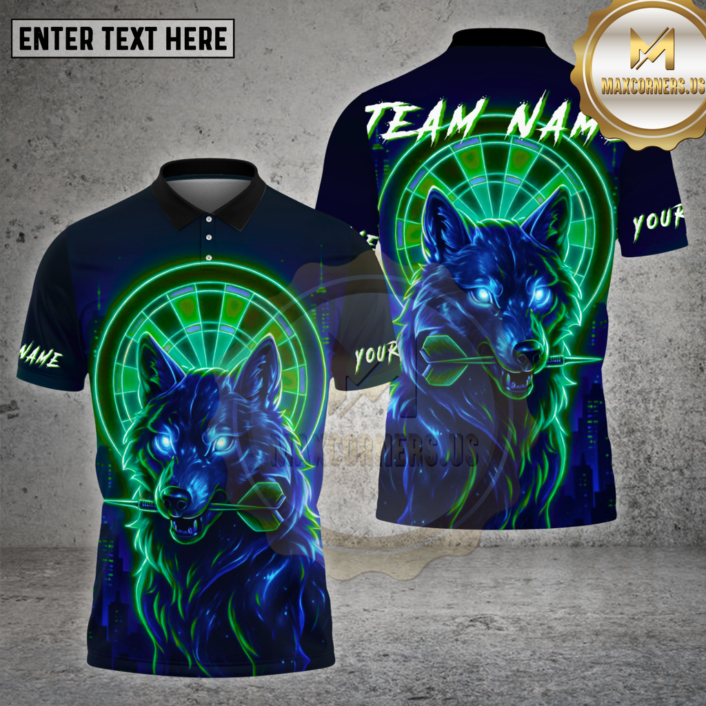 Maxcorners Darts Shirt Neon Wolf Dart Glow Multioptions Personalized Name, Team Name Unisex 3D Shirt (4 Colors)