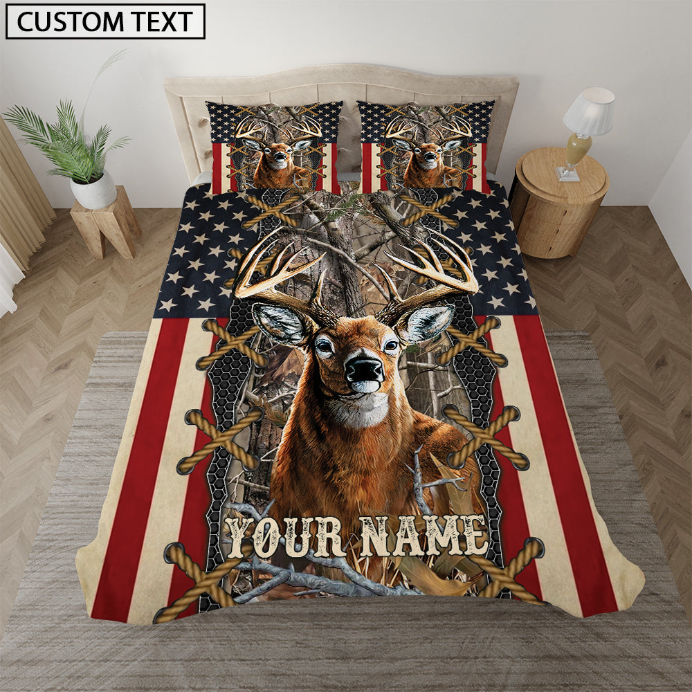 Maxcorners Deer American Flag Camo Grass Brown Personalized Name Bedding Set 3D All Over Printed