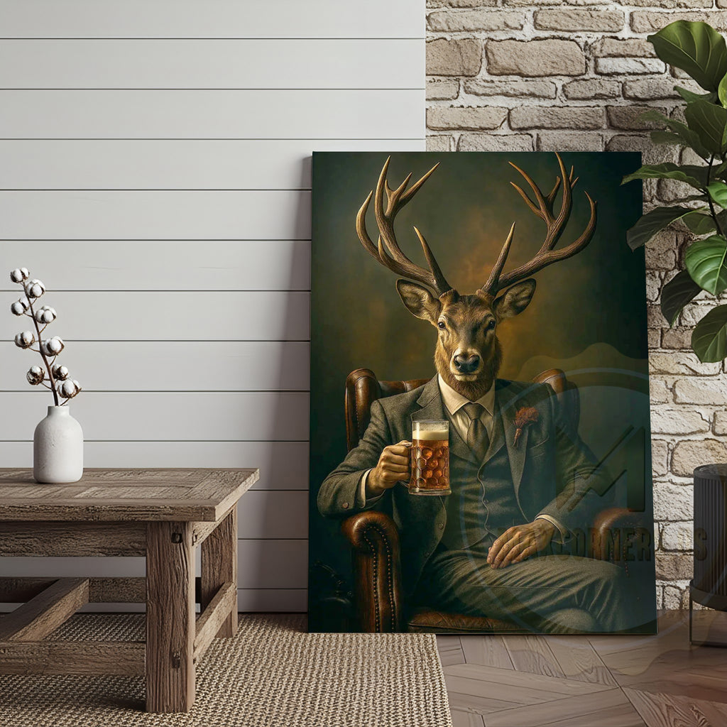 Maxcorners Deer Gentleman In Suit With Beer Rustic Bar Art Wrapped Canvas