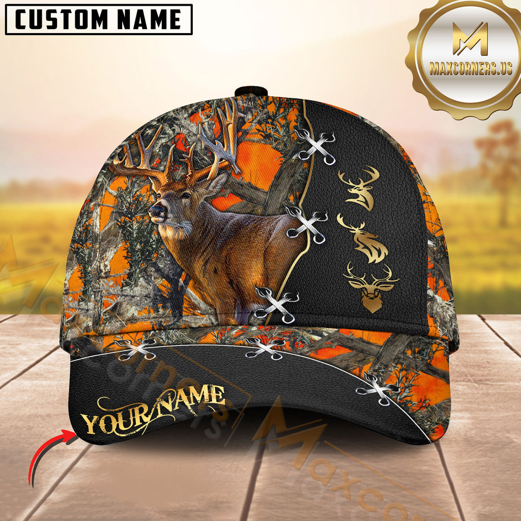 Maxcorners Deer Hunting Antler Camo Leather Stitch Multicolor Options Personalized Name 3D Cap
