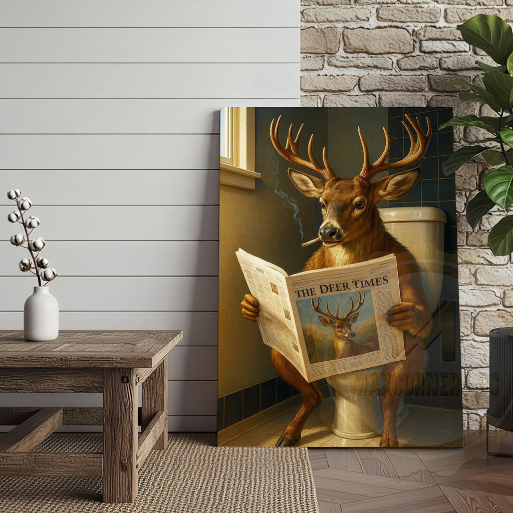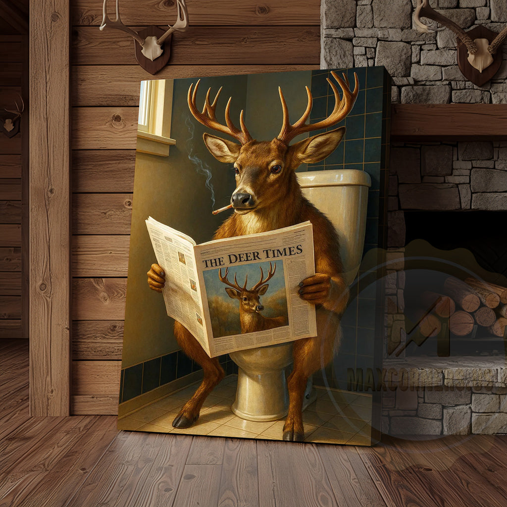 Maxcorners Deer Reading Newspaper Funny Bathroom Humor Rustic Art Wrapped Canvas