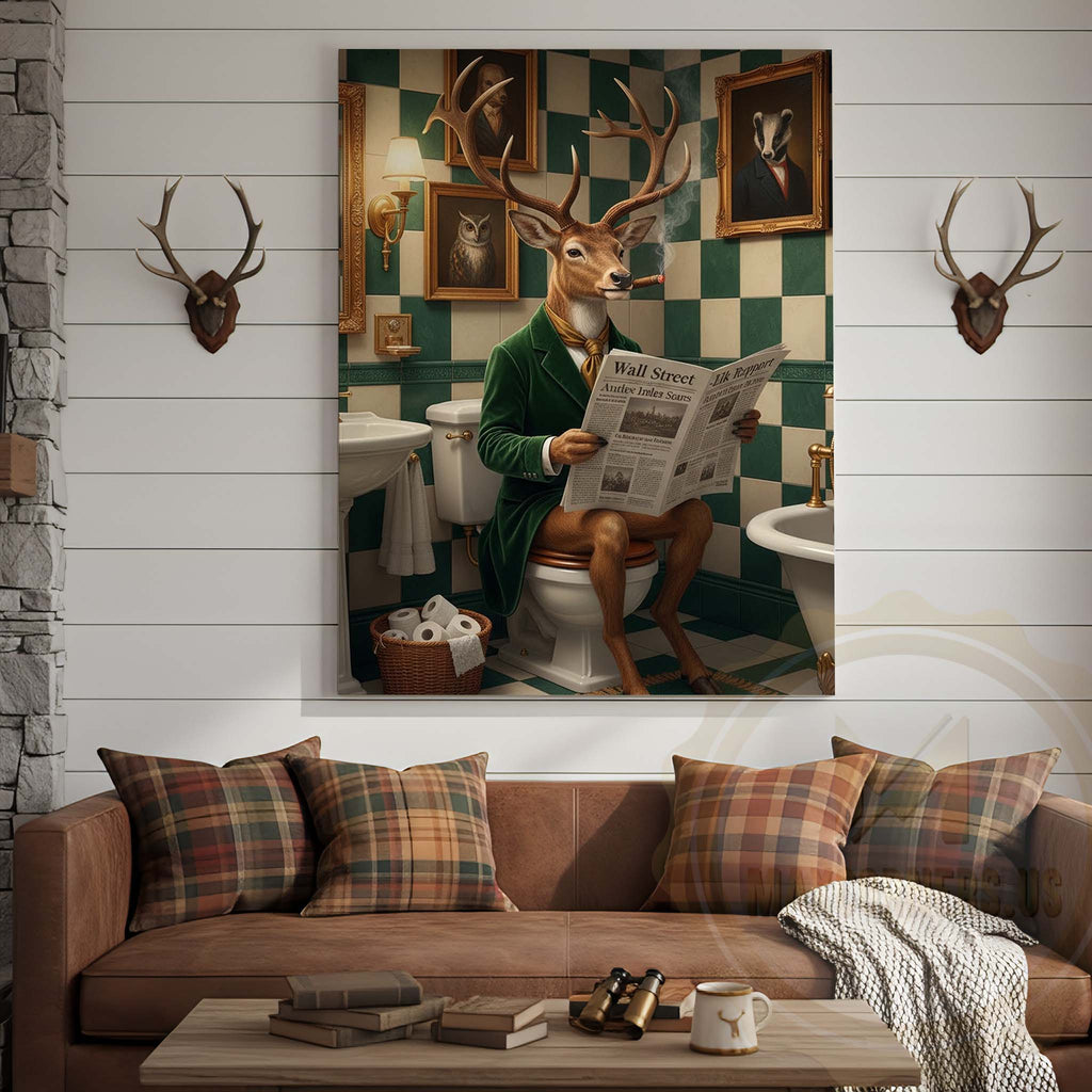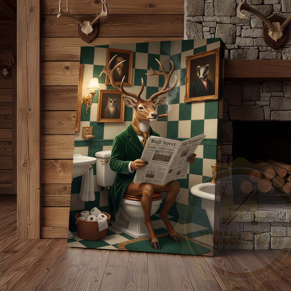Maxcorners Deer Reading Newspaper in Bathroom Wrapped Canvas