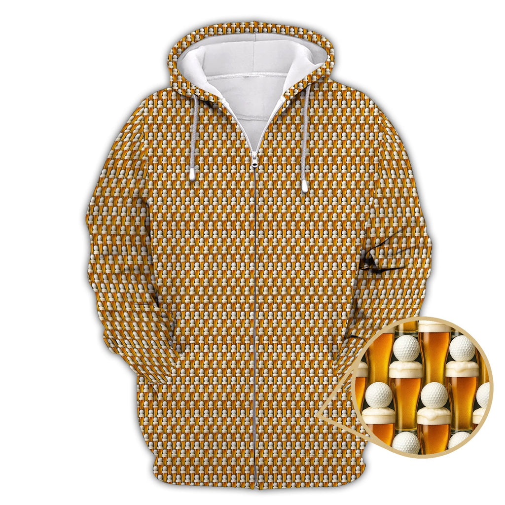 Maxcorners Golf And Beer Pattern Shirts, Funny Golf Shirt For Men, Crazy Golf Polos