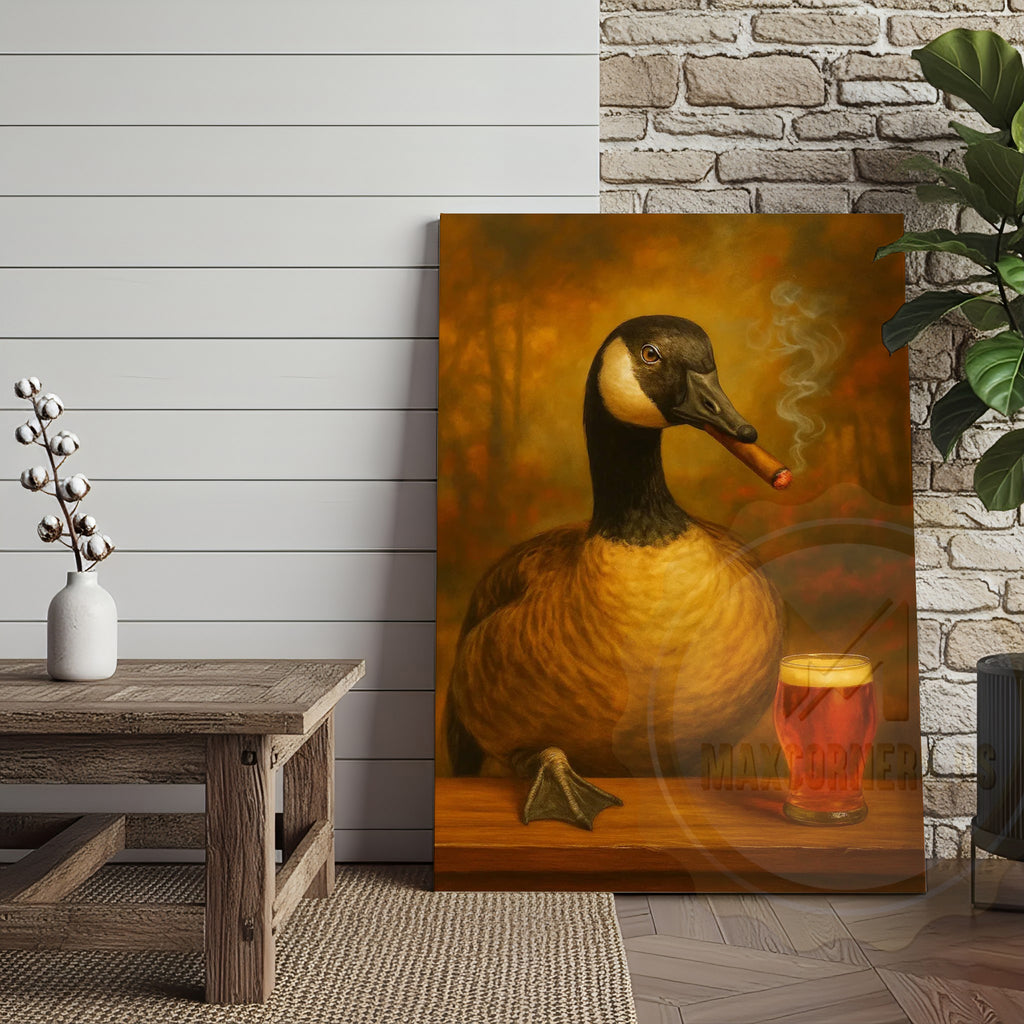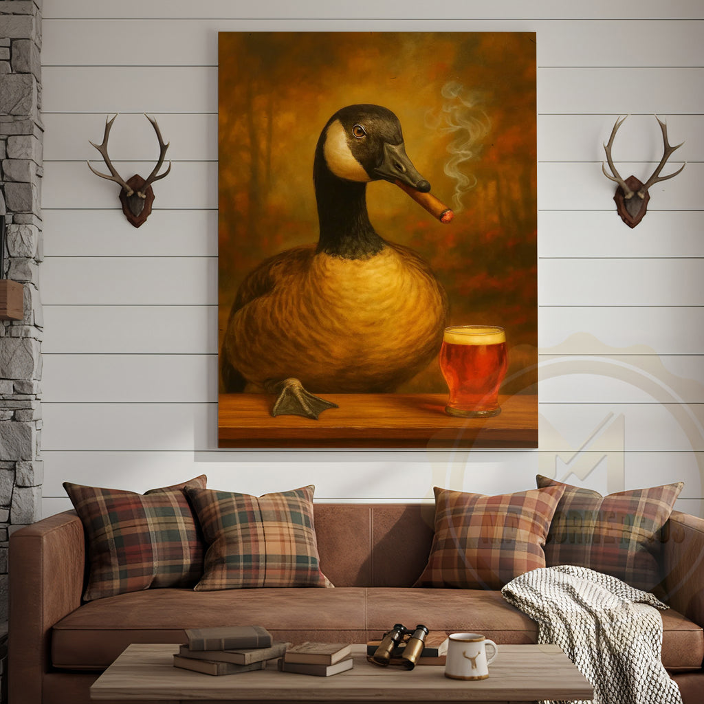 Maxcorners Goose Drinking Beer Rustic Bar Decor Wrapped Canvas
