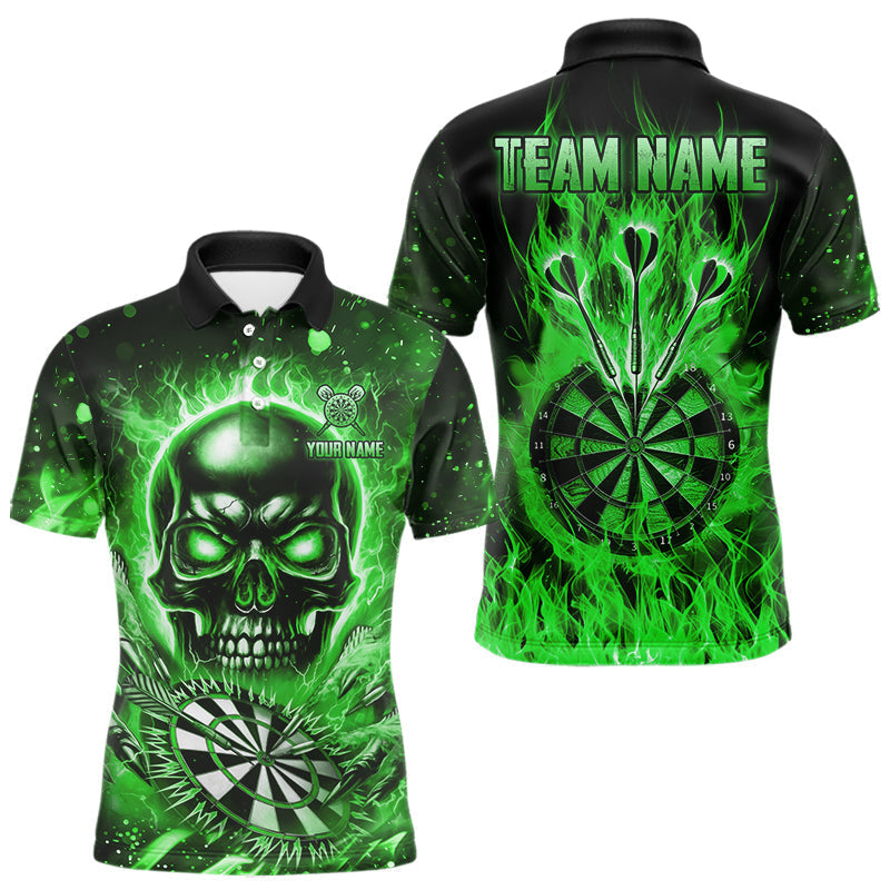 Maxcorners Green Flame Skull Dartboard Shirt For Men Custom Darts League Team Jersey Polo & Quarter Zip TU1410