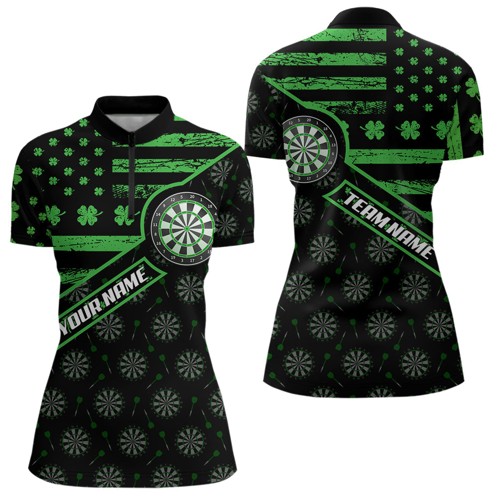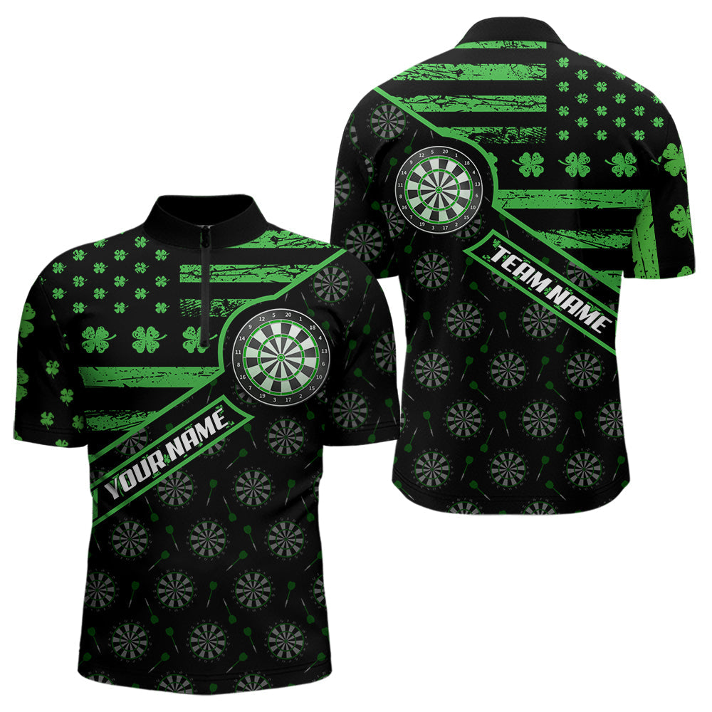 Maxcorners Green Shamrock Retro Us Flag Patriotic Darts Shirts For Men And Women Custom St Patrick Day Darts Jerseys