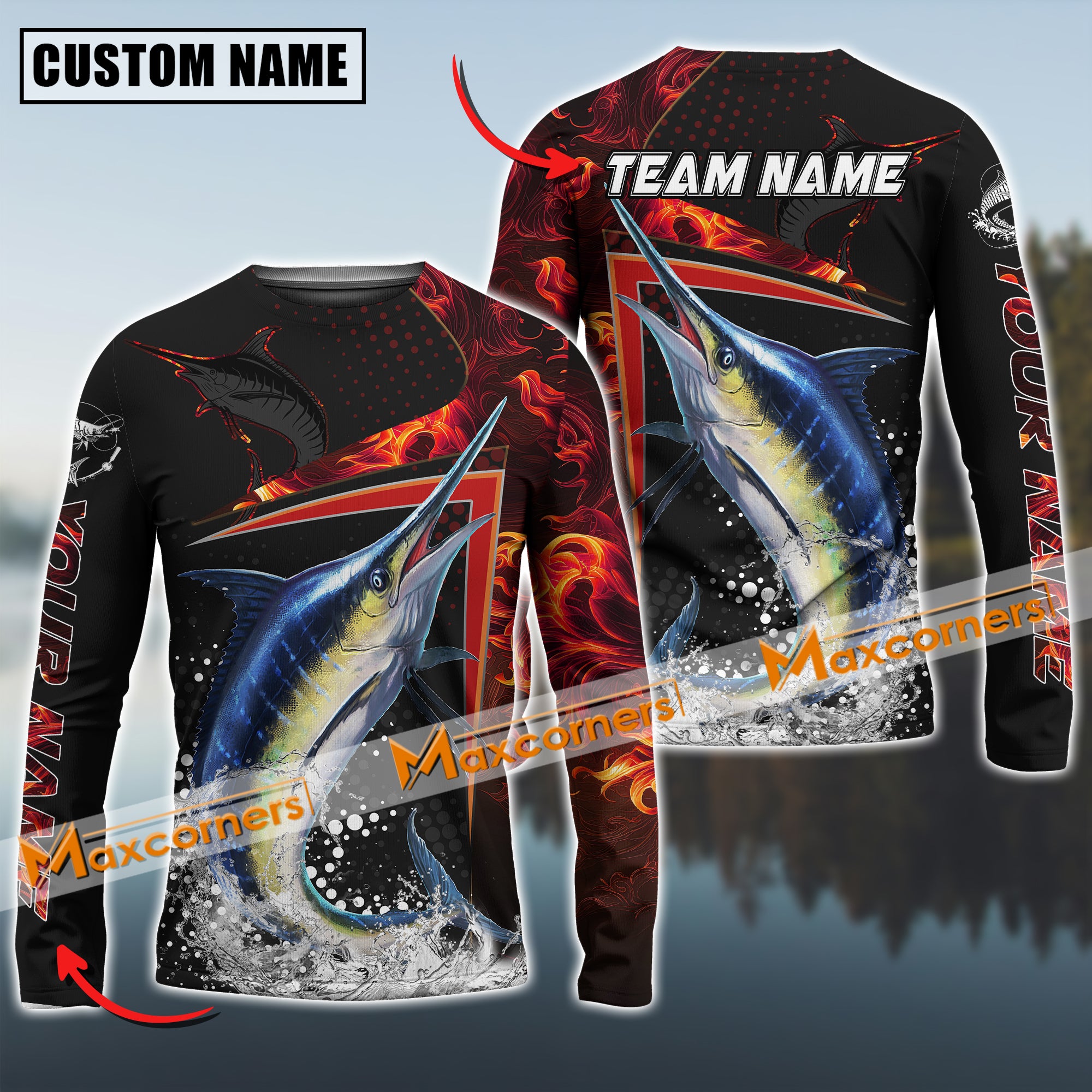 Maxcorners Marlin Fishing Red Flame Sport Jersey Personalized Name, Team Name Long Sleeve Shirt