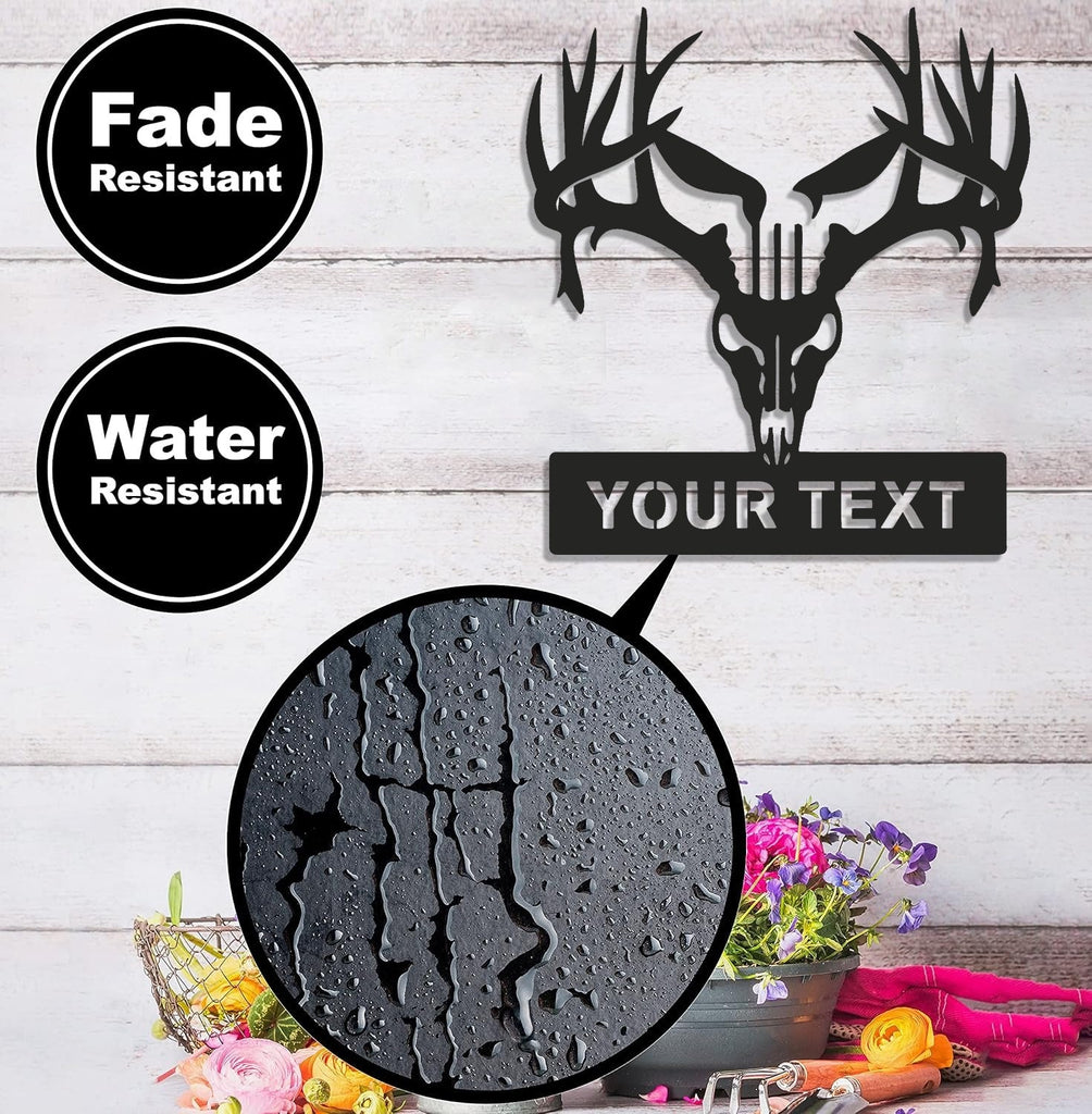 Maxcorners Personalized Deer Skull Metal Sign WITH LED/WITHOUT LED – Rustic Hunting Cabin Wall Decor, Gift for Hunters LM0110