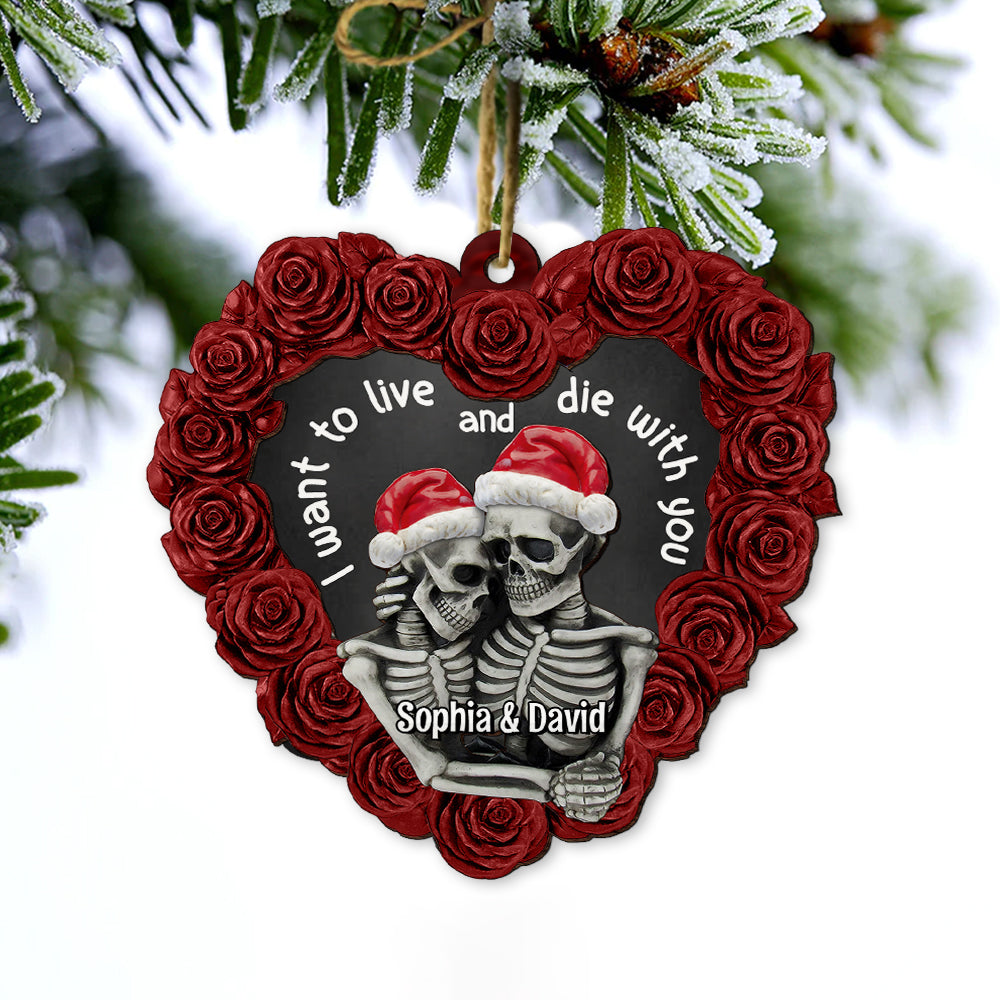 Maxcorners Personalized Skeleton Couple Black Rose Heart Shape - Ornament