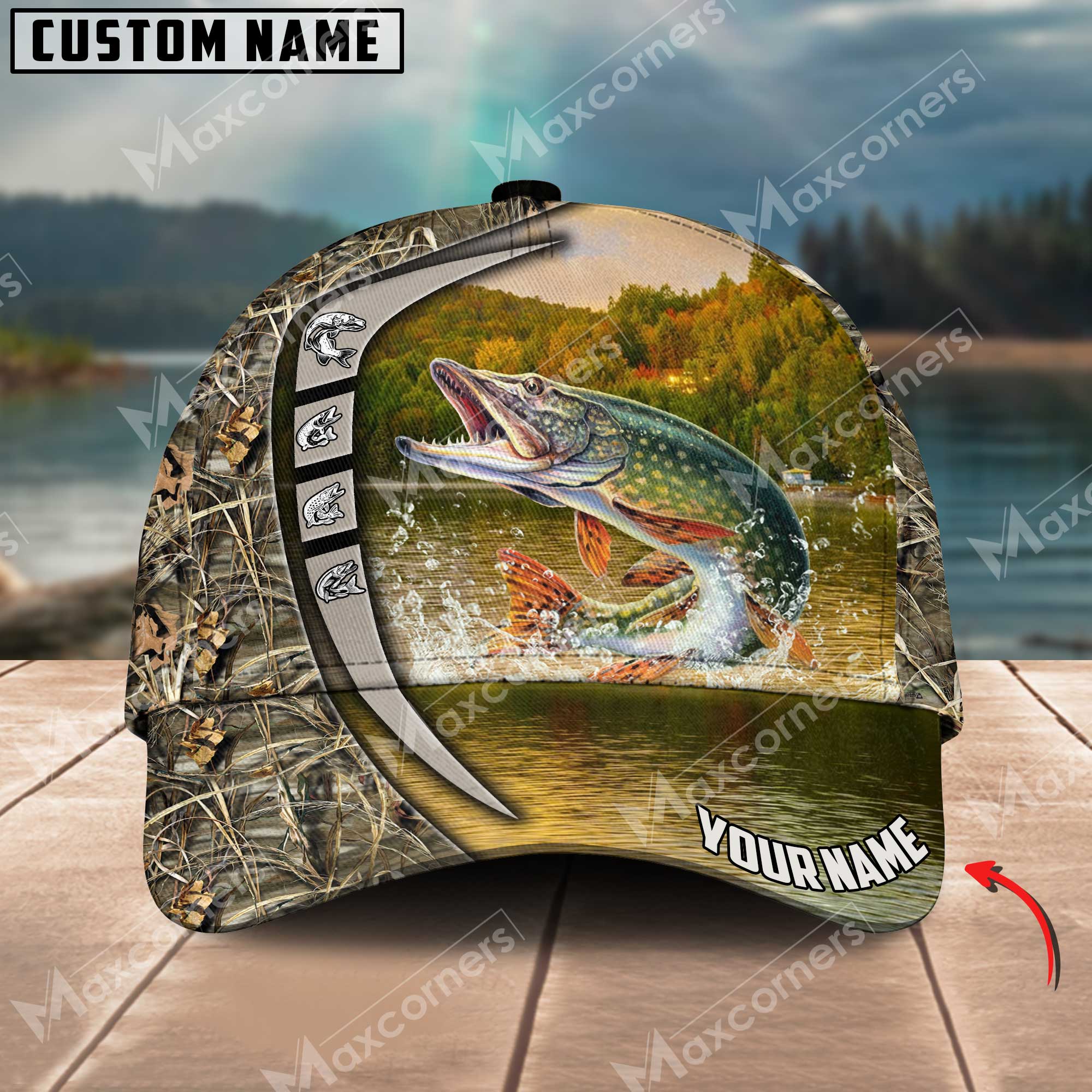 Maxcorners Pike Fishing River Pattern Personalized Classic 3D Cap
