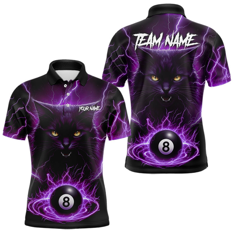Maxcorners Purple 8 Ball Thunder Lightning Cat Billiard Shirt For Men Custom Pool Team Jersey Polo & 1/4 Zip MT1810